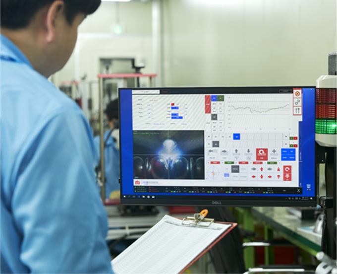 가장 기본이 되는 기계 가공과 용접의 경우 지정된 전문 엔지니어가 일관성 있는 품질의 제품을 양산 하고 있으며 마이크로 용접은 제품의 미세한 품질 변화가 제품의 수명 및 성능에 결정적 영향을 미치므로 완벽한 품질 관리를 위한 자동 생산 방식을 채택 하였습니다.