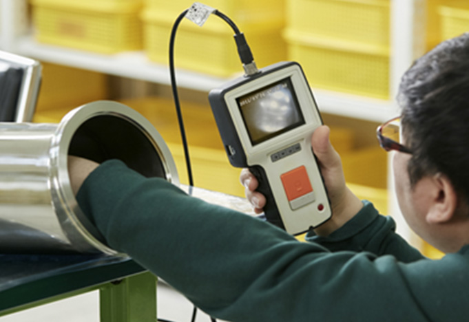 We check the interior welding status, which is the most important part of vacuum pipe quality control. We focus not only on the exterior condition of our products but also the interior, which directly affect product performance.